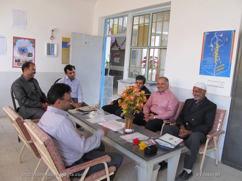 هدین طبس را چنین توصیف کرده: “یک خیابان اصلی و یک بازار سرپوشیده در امتداد آن. در یک طرف بازار، مسجد اصلی طبس با مناره قدیمی به ارتفاع ۴۰ متر و یک کتیبه کوفی زیبا و مدرسه با دو مناره قدیمی و کوتاه قرار داشتند.”